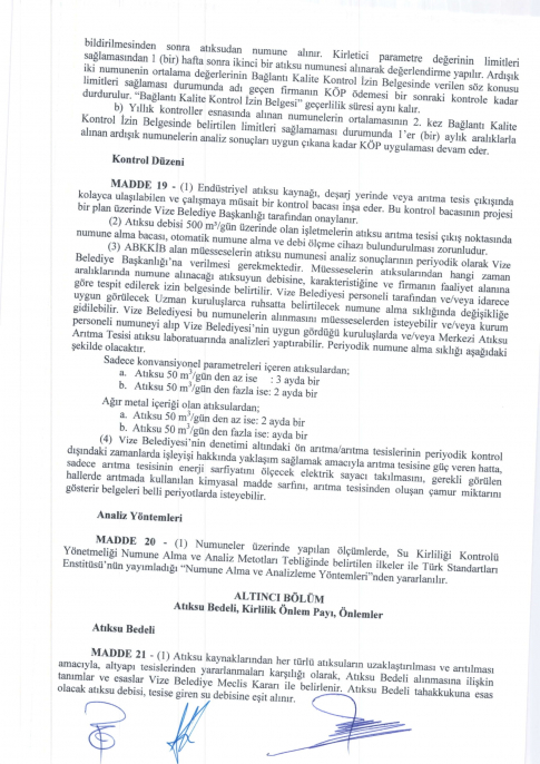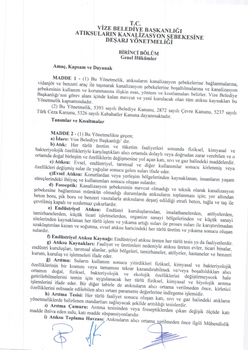 Atık Suların Kanalizasyon Şebekesine Bağlantı Yönetmeliği