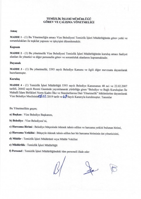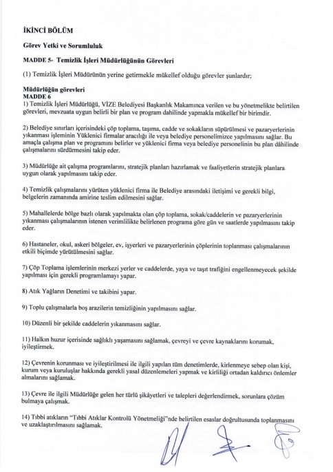 TEMİZLİK İŞLERİ MÜDÜRLÜĞÜ YÖNETMELİĞİ Kırklareli ili Vize Belediyesi'ne ait kurumsal web sitesi. Vize Belediyesi'nden güncel haberler, projelerimiz, hizmetlerimiz ve e-belediye işlemleri