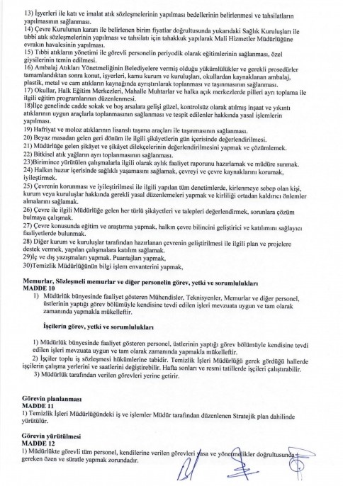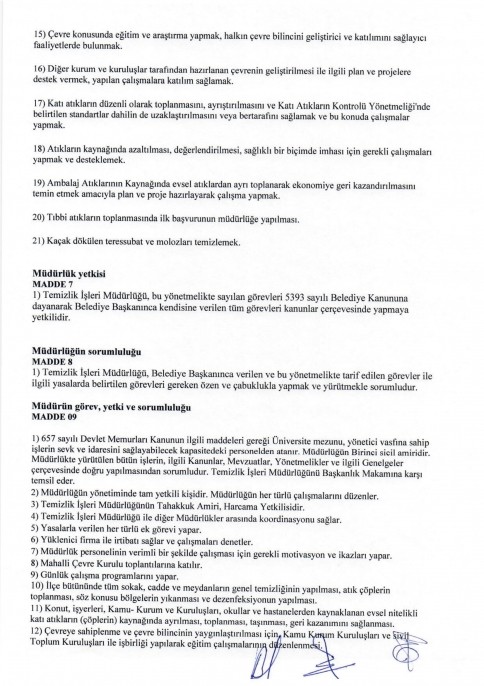 TEMİZLİK İŞLERİ MÜDÜRLÜĞÜ YÖNETMELİĞİ
