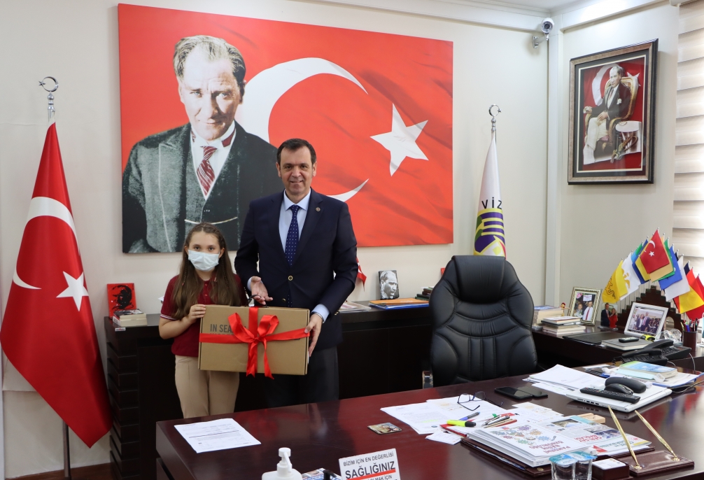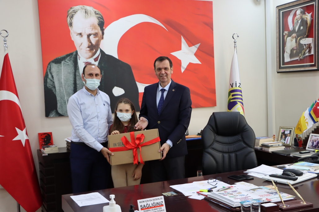 Belediyemiz tarafından düzenlenen ''Vize’yi Sloganında Yansıt, İlçemizi Temsil Edecek Sloganı Sen Belirle'' konulu slogan yarışması sonucunda ilçemiz Cumhuriyet İlkokulu 4/D sınıfından Eylül YÖRÜK isimli öğrenciye ait olan ''Sakin Şehir,Zengin Kültür'' sloganı komisyon tarafından seçilerek ödüle layık görüldü. Belediye Başkanımız Ercan ÖZALP öğrenciyi tebrik edip başarılarının devamını dileyerek Başkanlık makamında ödülünü kendisine takdim etti.