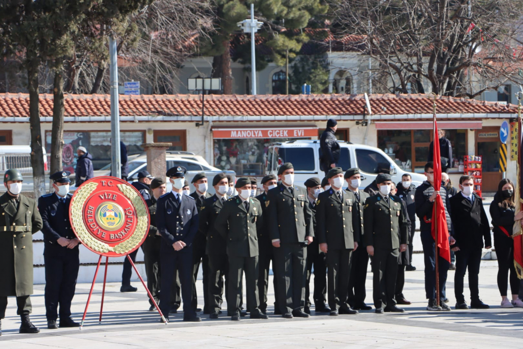18 Mart Çanakkale Zaferi ve Şehitleri Anma Günü’nün 107. yıldönümü dolayısıyla ilçemiz tören alanında bulunan Atatürk Anıtı'na çelenk sunma töreni gerçekleştirildi. Törenin ardından Vize Meslek Yüksekokulunda günün anlam ve önemine ilişkin anma programı düzenlendi. Program sonrası protokol tarafından ilçemiz Bağlar Mezarlığında ki şehit mezarlığında tüm şehitlerimiz için dua edildi. Ardından şehit ailesi ziyareti gerçekleştirildi. Başta Ebedi Başkomutan Gazi Mustafa Kemal Atatürk olmak üzere tüm şehitlerimizi saygı ve minnetle anıyoruz. Çanakkale Zaferi’nin 107. yılı kutlu olsun.