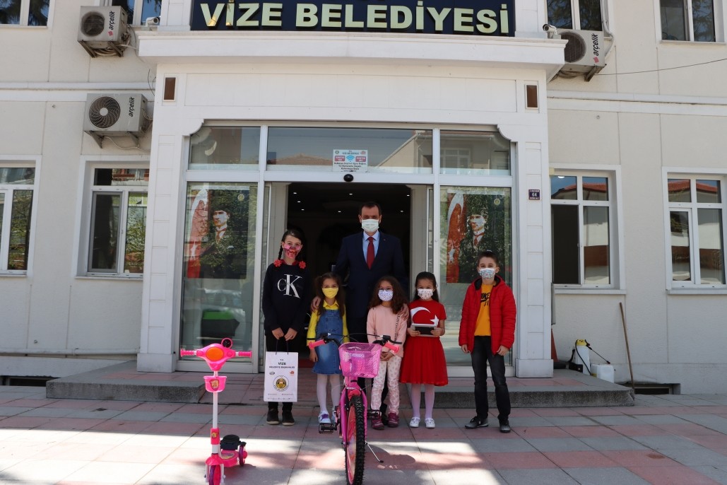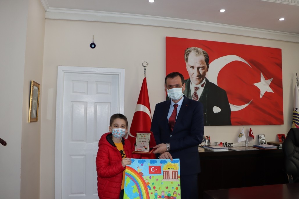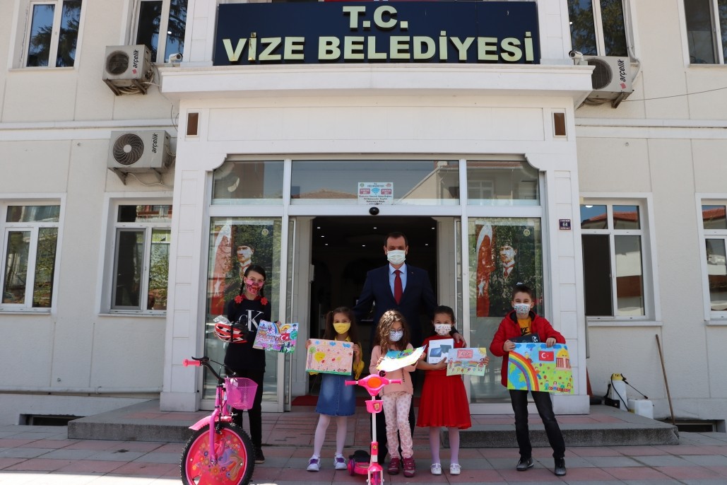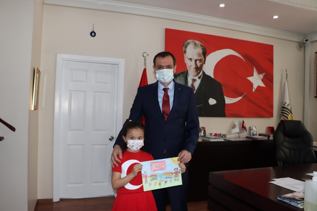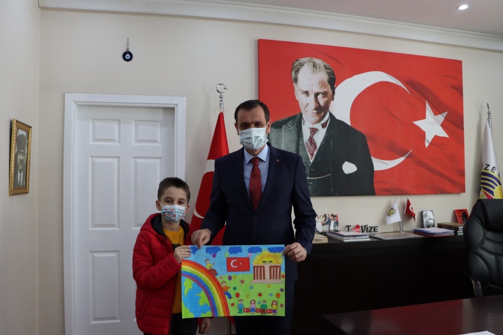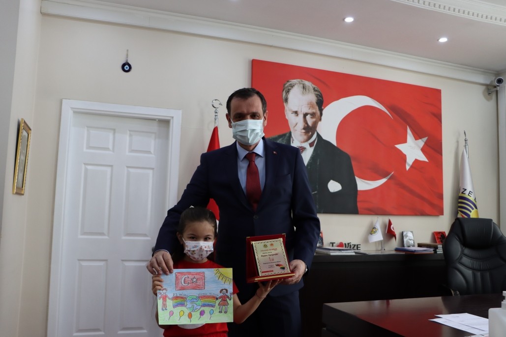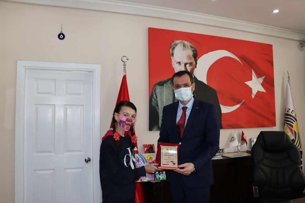 Belediyemiz tarafından organize edilen ''Düşlediğin 23 Nisan'' temalı resim yarışmasına katılarak dereceye giren öğrencileri Belediye Başkanımız Ercan ÖZALP makamında ağırlayarak hediyelerini ve plaketlerini takdim etti. Yaptıkları resimleri ile ilk 5'e giren öğrencileri başarıları dolayısıyla tebrik etti.