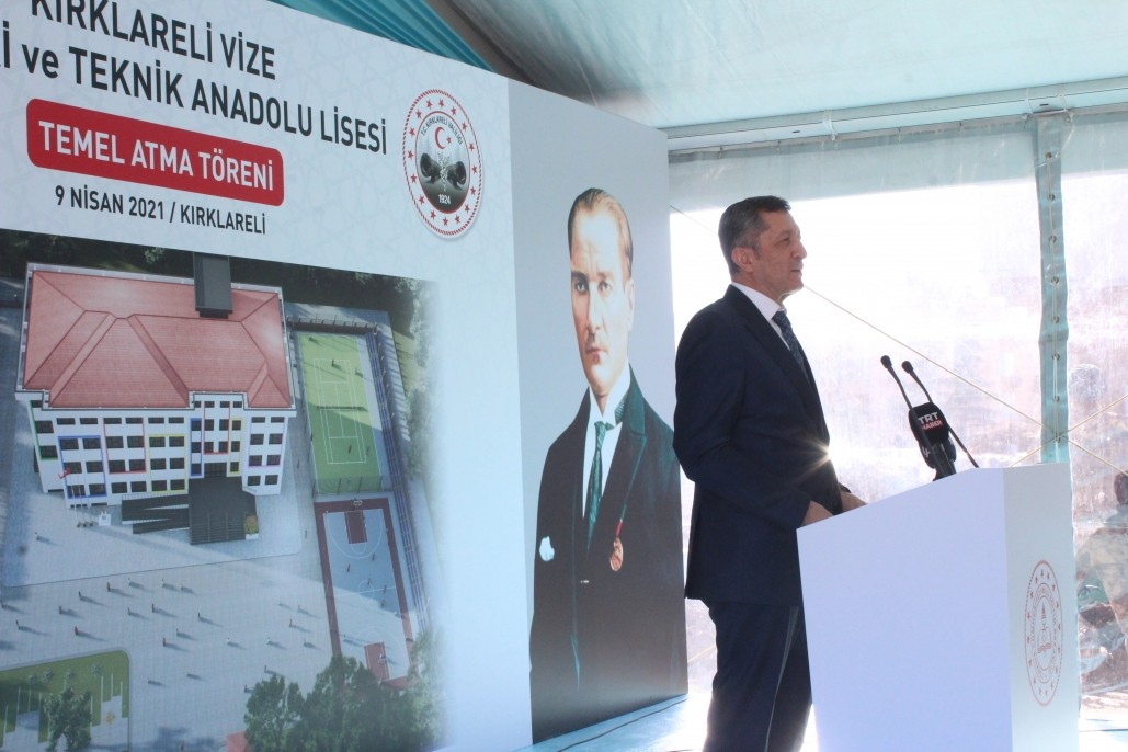 Milli Eğitim Bakanımız Sayın Prof. Dr. Ziya Selçuk, Vize Mesleki ve Teknik Anadolu Lisesi temel atma töreni için 09.04.2021 Cuma günü Vizemize geldi. Törene Bakanımız ile birlikte Ak Parti Kırklareli Milletvekili Sayın Selahattin Minsolmaz, Kırklareli Valimiz Sayın Osman Bilgin, İlçe Kaymakamımız Sayın Elif Canan Tuncer ve Belediye Başkanımız Ercan Özalp ile davetliler katıldı.